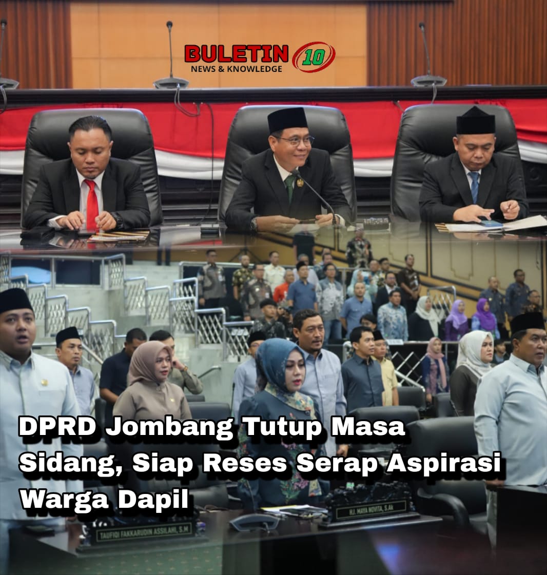 buletin10.id – Jombang -DPRD Kabupaten Jombang menggelar rapat paripurna internal penutupan masa sidang sekaligus pembukaan masa reses cawu II tahun 2026 Sabtu (15/3/2026). Melalui agenda tersebut, para wakil rakyat bersiap turun langsung ke masyarakat untuk menyerap berbagai aspirasi di daerah pemilihan (dapil) masing-masing.