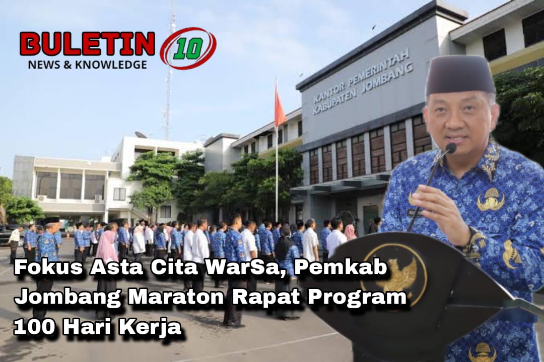 Buletin10.id – Jombang – Meskipun baru dilantik pekan lalu (20/02/2025), namun Pemkab Jombang secara marathon mulai menggelar rapat-rapat internal untuk menyusun program 100 hari kerja Asta Cita WarSa. Hal tersebut dilakukan, mengingat Bupati Jombang Warsubi, masih mengikuti kegiatan retreat di AKMIL Magelang. Namun demikian, Pemkab Jombang di bawah koordinasi langsung Sekdakab Agus Purnomo intens berkoordinasi langsung dengan Bupati Warsubi melalui saluran seluler.