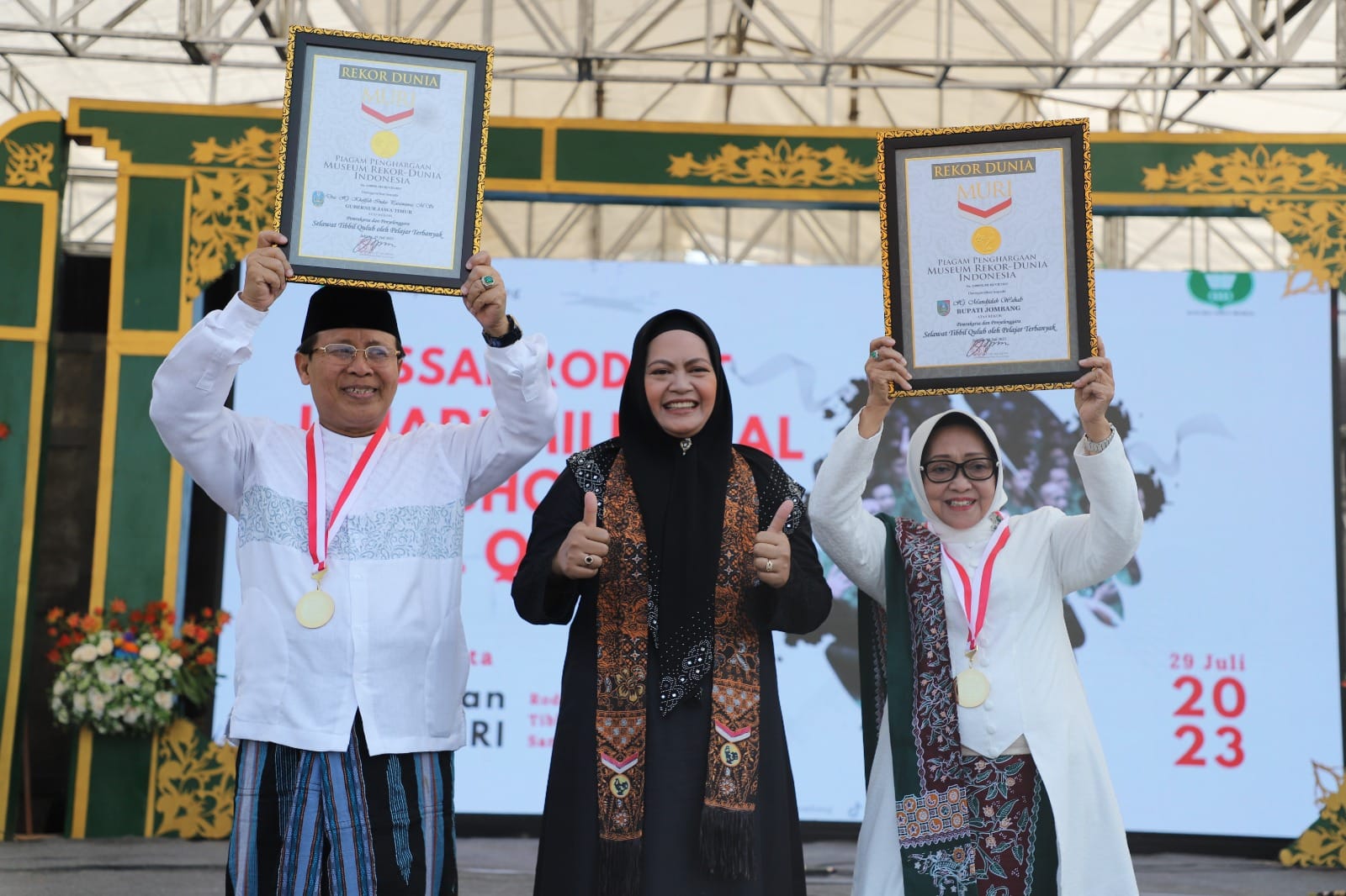 “Alhamdulillah kita mendapatkan tiga rekor MURI sekaligus. Dengan begitu, sekarang total kita sudah meraih anugerah 5 rekor MURI. Karena sebelumnya kita juga memecahkan rekor dalam tingkepan massal dan Tari Remo Boletan,” jelas Bupati yang biasa dipanggil Buk Mun ini.