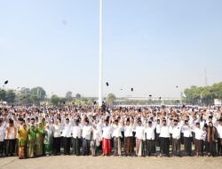 Antusiasme puluhan ribu pelajar nampak saat berbaris rapi memenuhi seluruh penjuru dan sudut Alun-Alun Jombang.