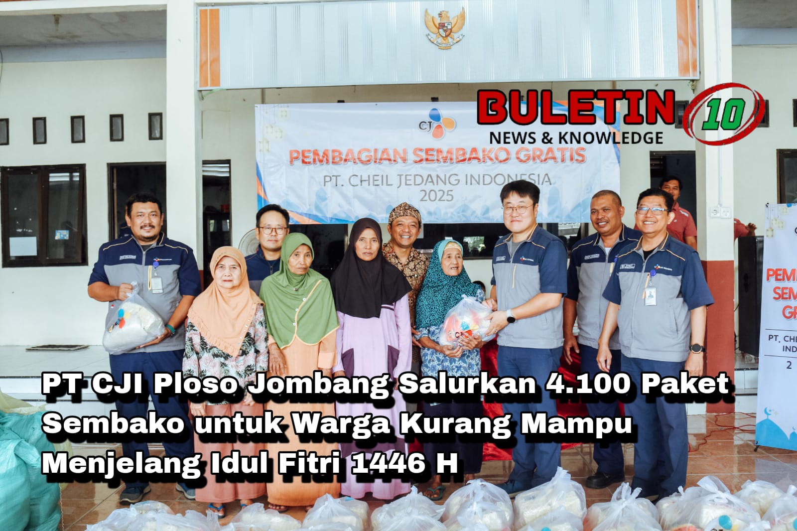 buletin10.id – Jombang – Hari Raya Idul Fitri 1446 H sudah tinggal hitungan hari saja. Untuk itu, PT Cheil Jedang Indonesia (CJI) Ploso Jombang menyerahkan bantuan Corporate Social Responsibility (CSR) sedikitnya berupa 4.100 paket sembako untuk warga kurang mampu yang berdomisili di sekitar perusahaan PMA asal Korea Selatan tersebut.