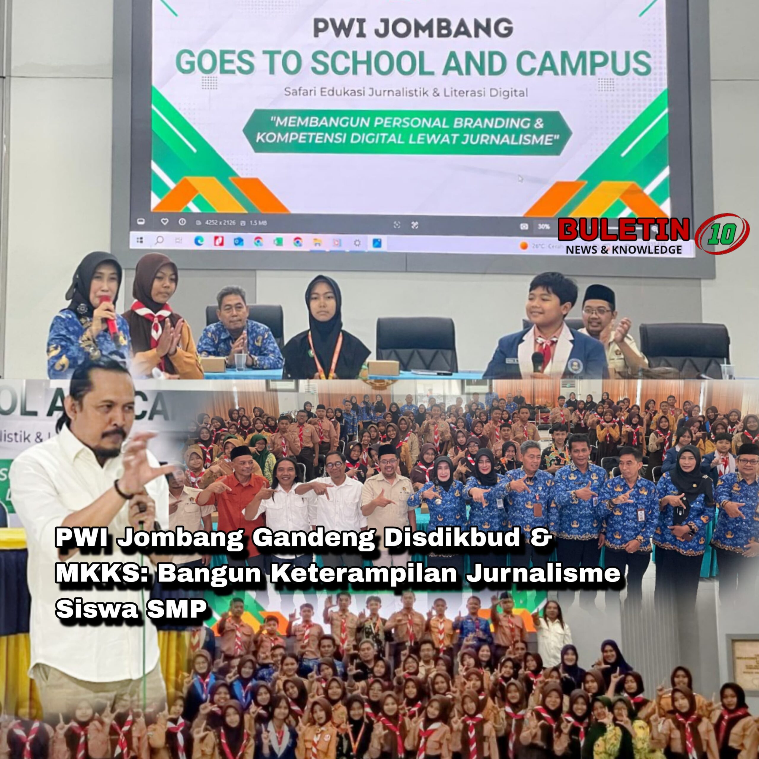 buletin10.id – Jombang – Sebanyak 96 siswa perwakilan SMPN di kabupaten Jombang mendapatkan pengalaman baru dalam menyelami dunia digital melalui agenda Safari Edukasi Jurnalistik dan Literasi Digital yang digelar oleh Persatuan Wartawan Indonesia (PWI) Jombang bekerja sama dengan Musyawarah Kerja Kepala Sekolah (MKKS) SMP Jombang pada Jumat pagi hingga siang (18/4/2026).
