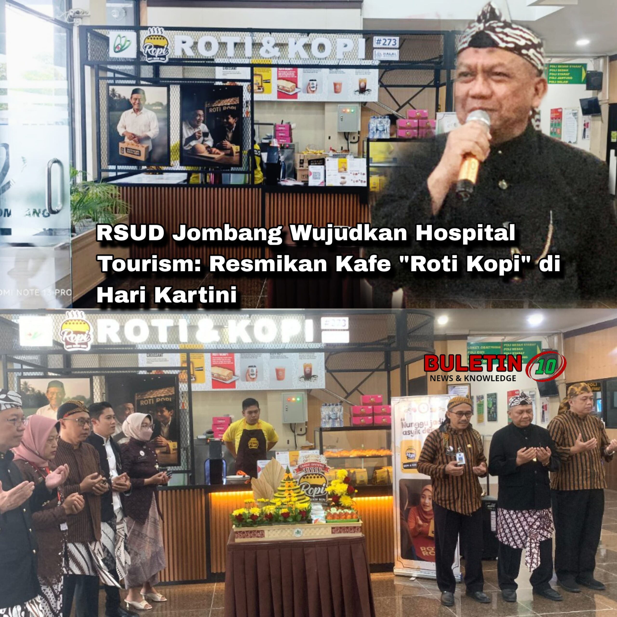 Buletin10.id – JOMBANG — RSUD Jombang secara resmi memperkenalkan fasilitas baru berupa unit layanan kuliner “Roti Kopi” yang berlokasi di area rumah sakit pada Selasa (21/4/2026). Peresmian ini menandai langkah strategis manajemen dalam mentransformasi pelayanan kesehatan menuju konsep hospital tourism.
